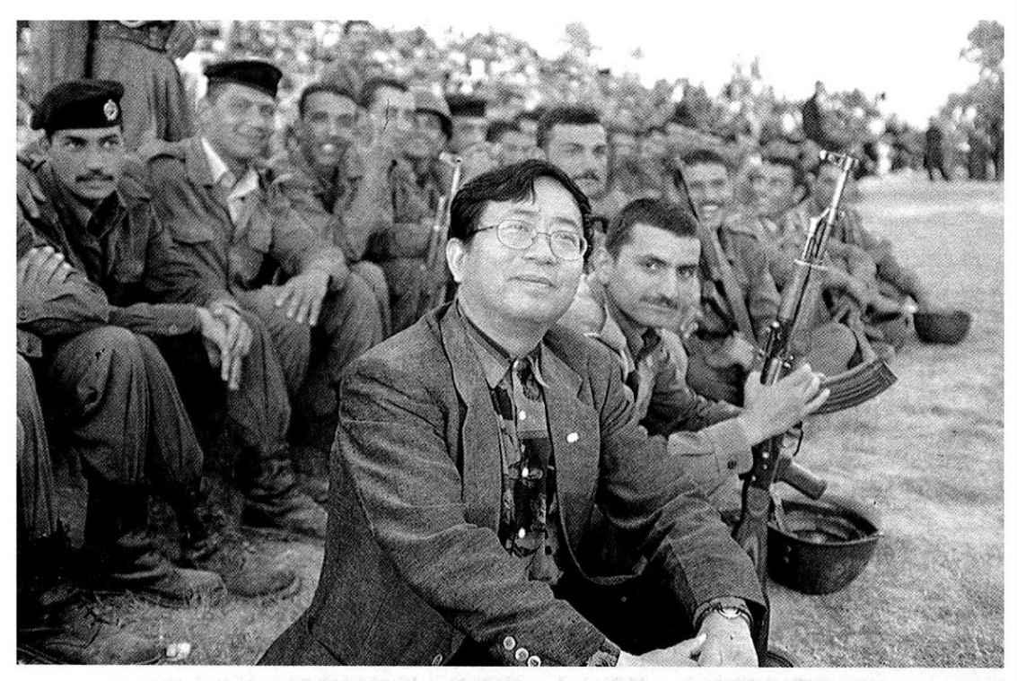 忽然看见主席台的贵宾席上有一位先生一边向我招手一边在一级级地往下挤,定睛一看,是中国驻伊拉克大使张维秋先生。张大使执意要我坐到贵宾席去,我则告诉他,在戒备森严的仪式中,我居然能在这么大的草地上自由自在地窜来窜去,求之不得。大使立即明白,笑了笑也就由我去了。