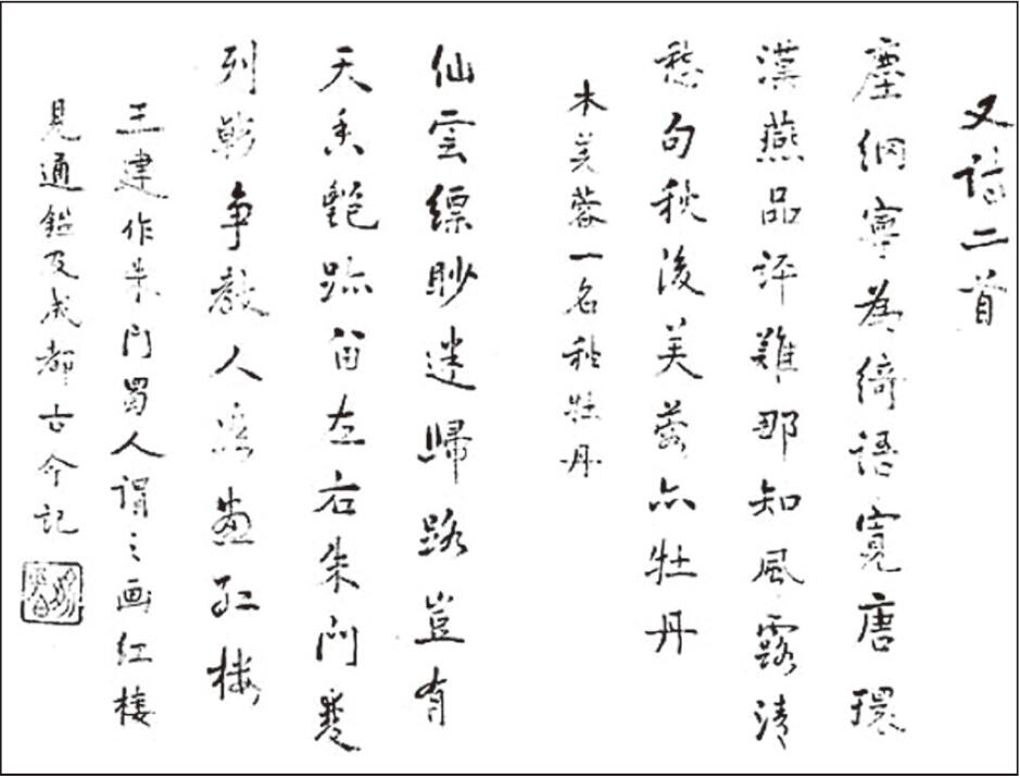 平伯七八岁时,老人命他每晚来做功课。他凭着方桌,一灯耿然,老人据着靠壁的大椅子,口授文字,以部首偏旁为序,如从木的为“松”“柏”“桃”“李”等,从水的为“江”“海”“河”“汉”等,命他一一写在用竹纸订成的本子上,较冷僻的字写不出来,老人写给他看,照样录下,每晚所写不多,时间也不长,但持之以恒,给他很大的进益。后来老人病了,才告辍止。他回忆有句云:“九秩衰翁灯影坐,口摹苫帖教重孙。”光绪丙午(一九〇六年)中秋,老人于院中燃着香斗。这是吴中的俗尚,斗高数尺,可点整夜,斗的四周,遍插五色尖角的彩旗。他喜欢得很,因为看过京剧,武将背后插有旗帜,正想把斗中的彩旗拔下来,自己插在颈背间以壮威风,可是老人忽发吟兴,要大家联句,命他先开头。这一下,他搔头摸耳,大感为难,逼着逼着,才逼出了七个字来:“八月中秋点斗香”,老人认为尚可,第二句是平伯母亲的:“承欢儿女奉高堂”,第三句是平伯长姊的,已记不起来,老人结句:“添得灯光胜月光”。这事经过七十多年,成为旧话了。