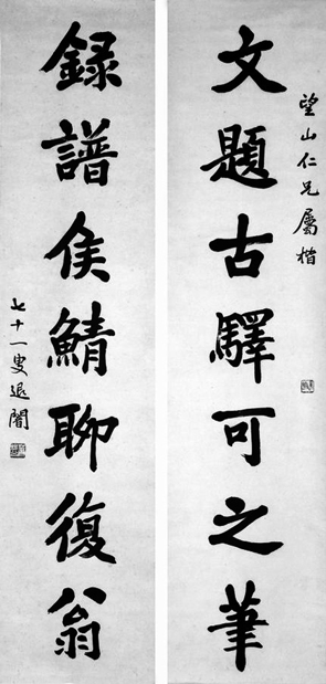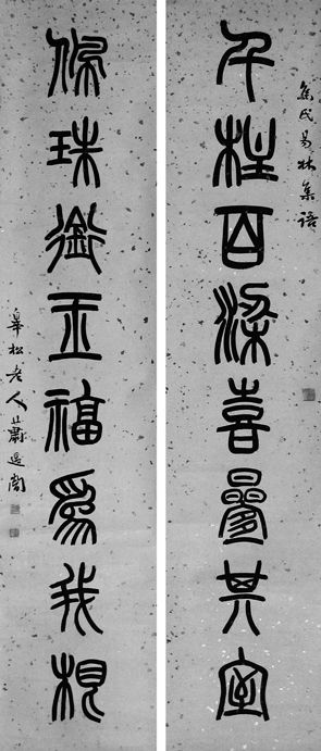 他晚境坎坷,六十诞辰,堂上张联自寿:“醉里一陶然,老我相羊频中圣;儒冠徒饿死,生儿不象始称贤。”其牢骚可知。一度外出,险遭车祸,不久,又倾跌受伤。加之他韬晦自隐,不趋时,不媚势,人罕知其学养与书艺,致一无收入,生活艰困。诸门弟子分散各地,难予照料,而我友陈锲斋,却于岁时令节,有所馈遗,因此,蜕庵与锲斋通问独多。蜕庵于一九五八年五月二十六日病故,年八十有三,锲斋展视遗札,为之泚然流涕,承出示数通,如云:“笔墨生涯,竟尔断绝,朝不谋夕,欲一饱而无从,以此而言,殆无生理,与吾弟(指锲斋)相晤之时,将无几耳。平生纪念之物,只有文百余篇,诗六七百篇,小学三书,日记三十余本,同付灰烬而已。念及此,为之痛心不置。”又:“拙荆撄疾半载,终以困,失治罹殃,于夏历三月初七日溘逝(早于蜕庵前四年)。”又:“窘于邮资,未即复。今年耳益聋,神益败,恐不能度年矣。”这写在明信片上,钤一小像印,秃头戴眼镜,微髭,作僧装。又一明信片:“自去年十二月中旬卧疾,加以倾跌重伤,偃蹇六阅月,今虽起坐,而两足几废,两耳完全失聪,目亦散光,如在云雾,神思恍惚,在世不久矣。往岁嘱我集一联,曾成句而未书:‘能读万卷书,气象远矣;作退一步思,身心泰然。’写至此,目瞀矣。”其艰苦真有出人意料之外者,当时政府当局知而悯之,由江苏省文史馆聘为馆员,馈以馆禄,奈年迈体衰,已不能挽回其重危之生命,那是多么令人嗟悼啊!