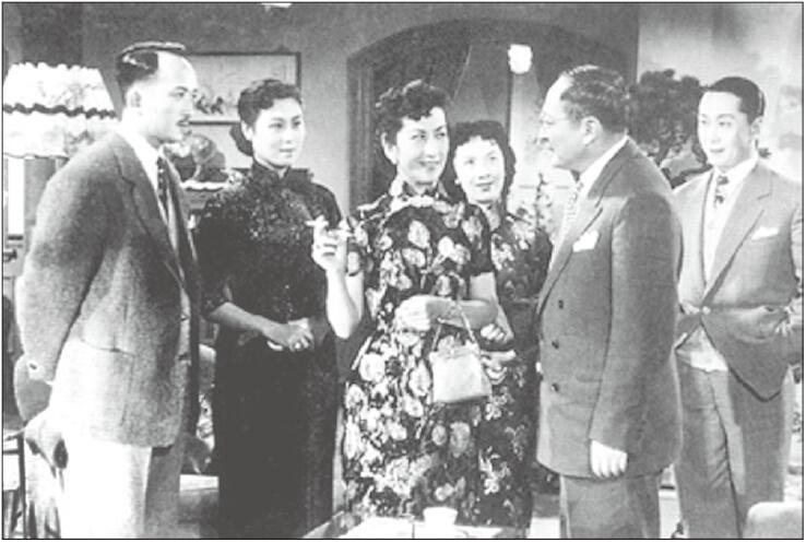 《不夜城》剧照,左起:孙道临、林彬、黄晨、黄宛苏、郑敏、阳华