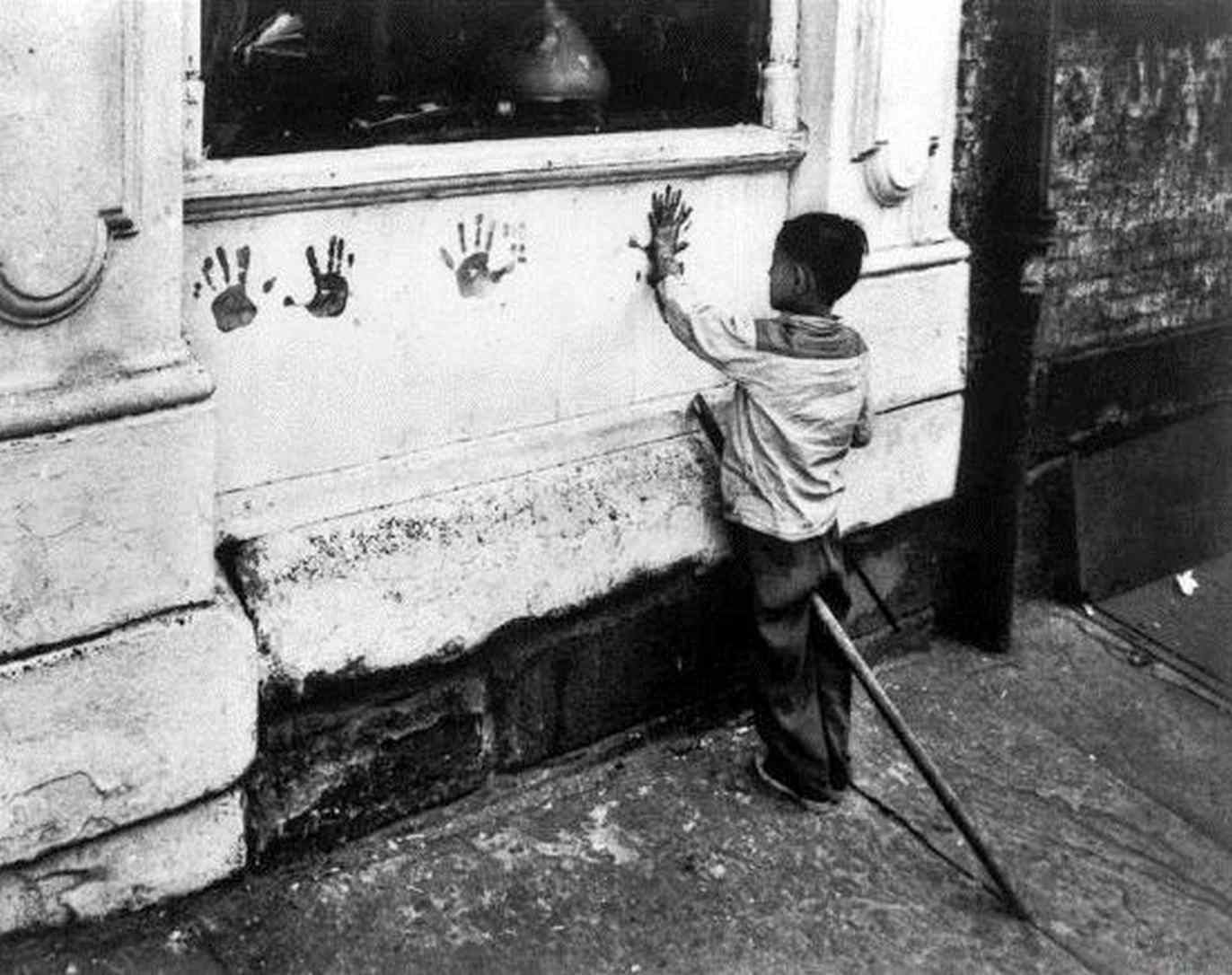 14. 未命名(男孩在墙上按手印),W. 尤金·史密斯,1955年至1956年