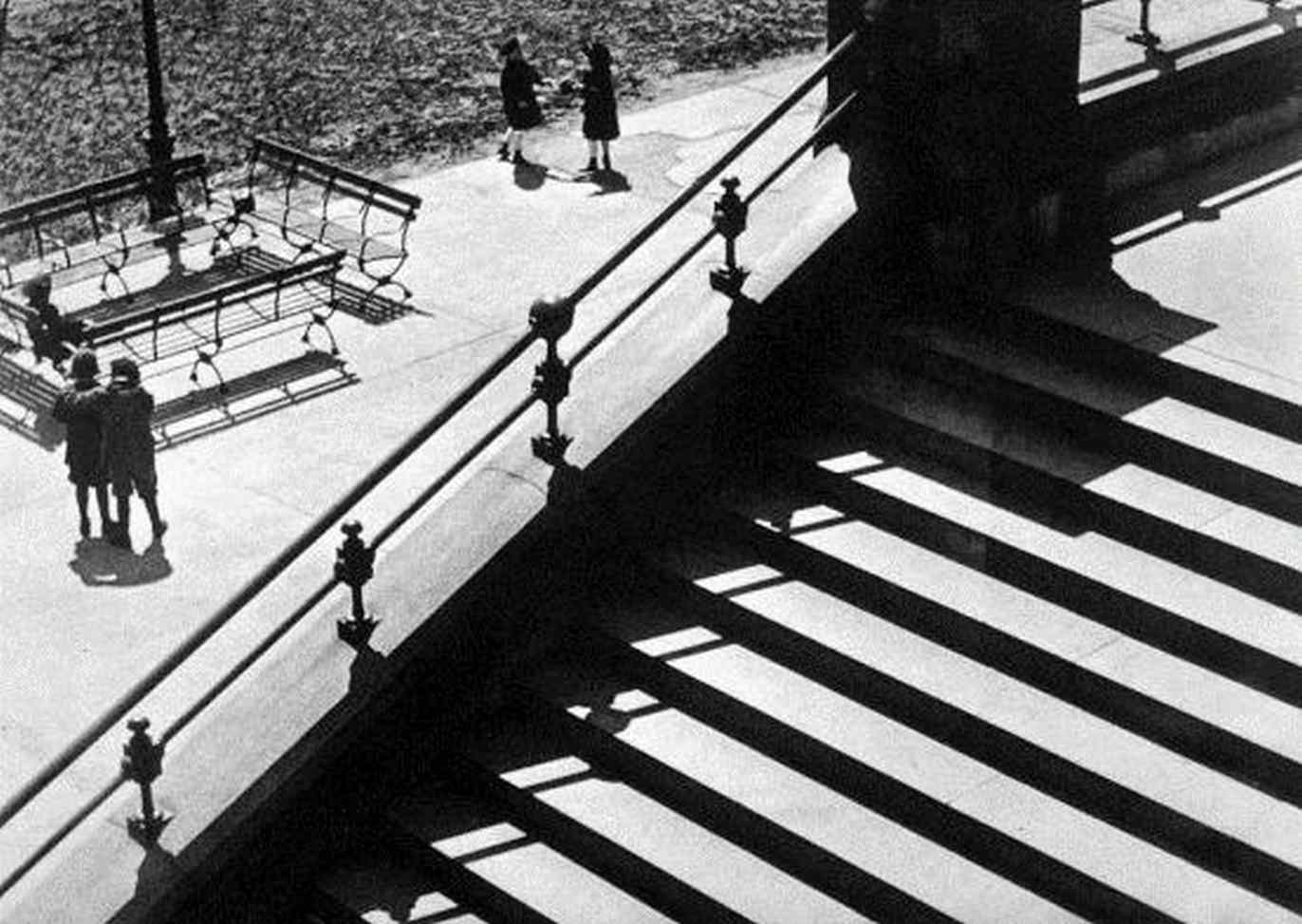 柯特兹留意的街景常常是其自身在纽约漂泊和失意落寞感受的剪影代表。街上走向商店的人们,是他悲伤的使者。那就是摄影师的全部了:你走在街上或坐在长凳上——或是看到窗外的人们在行走或坐在长凳上。