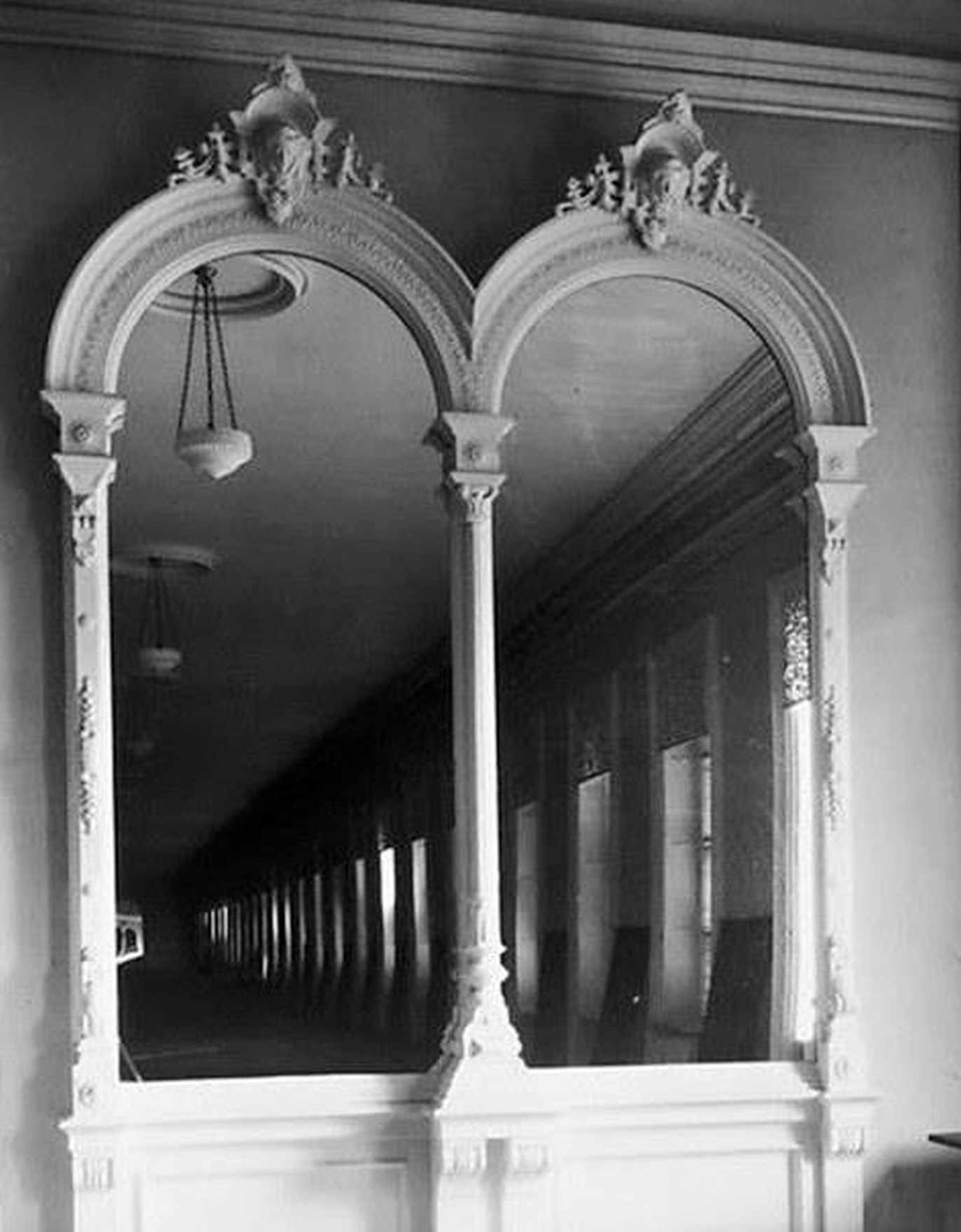 和阿特热一样,埃文斯也使用内在回顾远景,利用地板和窗户使走廊带回那些岁月。1931年在纽约萨拉托加斯普林斯,他针对小镇充满回忆的大街的室外镜头[66][76],拍摄了一幅像是室内版伙伴的照片。华丽的镜子反射出一组走廊,被窗户所照亮,像无尽的拱廊般退回过去岁月[77]。这不是简单地因为图像能够包含时间,它也揭示出地点有其内在的记忆能力。D. H. 劳伦斯的小说《查泰莱夫人的情人》中,康妮走过她丈夫的故乡时感受到这一点,她惊叫:“记得这地方,还记得。”