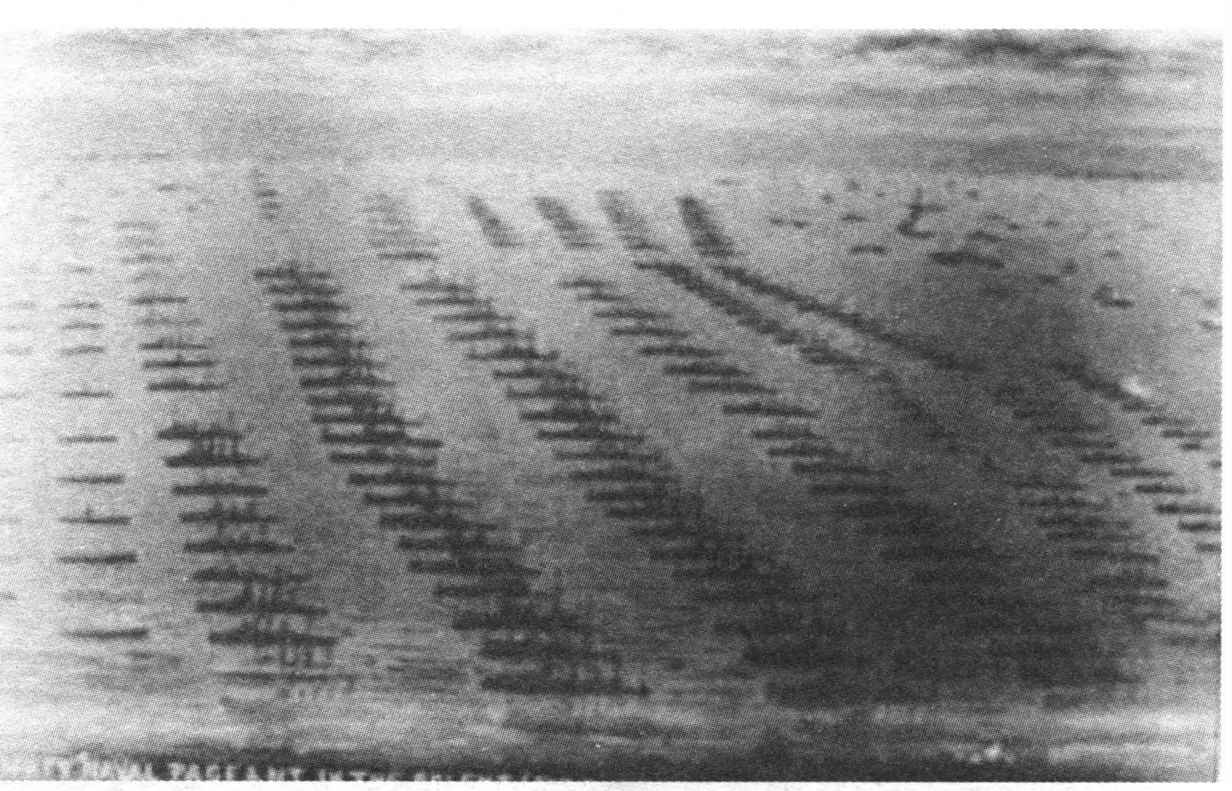 ◎英皇加冕仪式上的各国军舰,海圻号在14排F号,邻丹麦,荷兰军舰