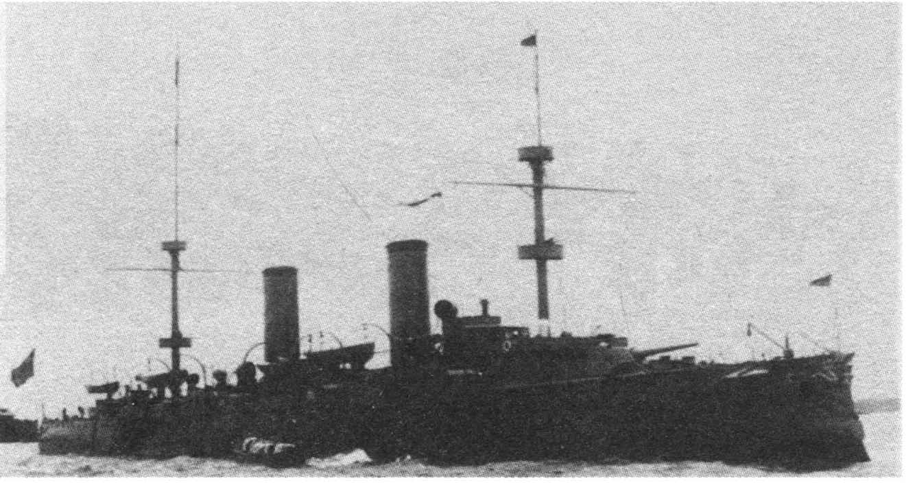◎英制海圻号巡洋舰,清末最大的战舰,注意舰首的飞龙纹,这是清朝军舰的特征。其主炮口径203毫米,至今中国海军中还没有超过的。该舰历经风雨,使用到1937年抗日战争爆发,该舰在江阴被击伤后作为阻塞船沉没于封锁线上