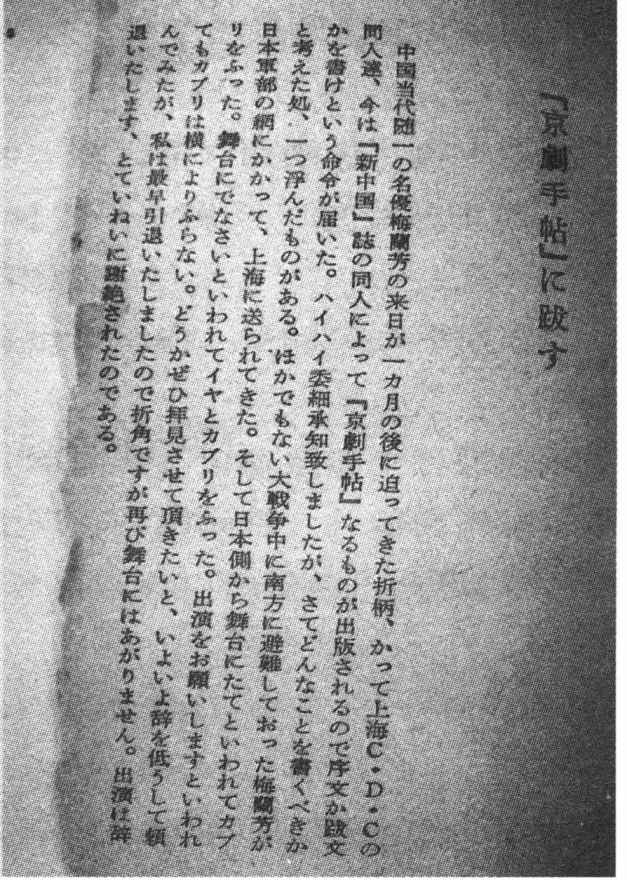 虽然书卷已经发黄,然先生那种梅花傲雪的骨气,依然通过异国的文字扑面而来。于是,忍不住写下这篇文字,算作对这位京剧名家的一点纪念。