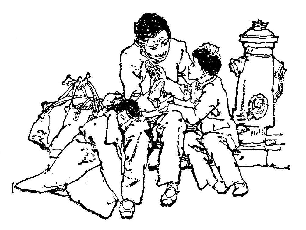 弟弟妹妹在妈妈的大衣下,都甜甜地睡着了。这时,寒风又送来了自鸣钟的声响:当……仍然是一下!啊,现在才一点半。距离轮船开航,还有四个半小时呢!