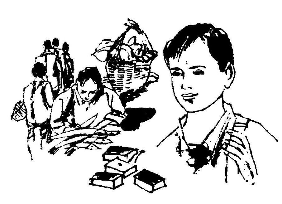 女生们戴着露出手指的手套,用削得又长又尖的铅笔在方格簿上写字,写很小很小的字。她们的手指细细的,又红又白,很干净,紧紧地低低地捏着笔,一动一动。
