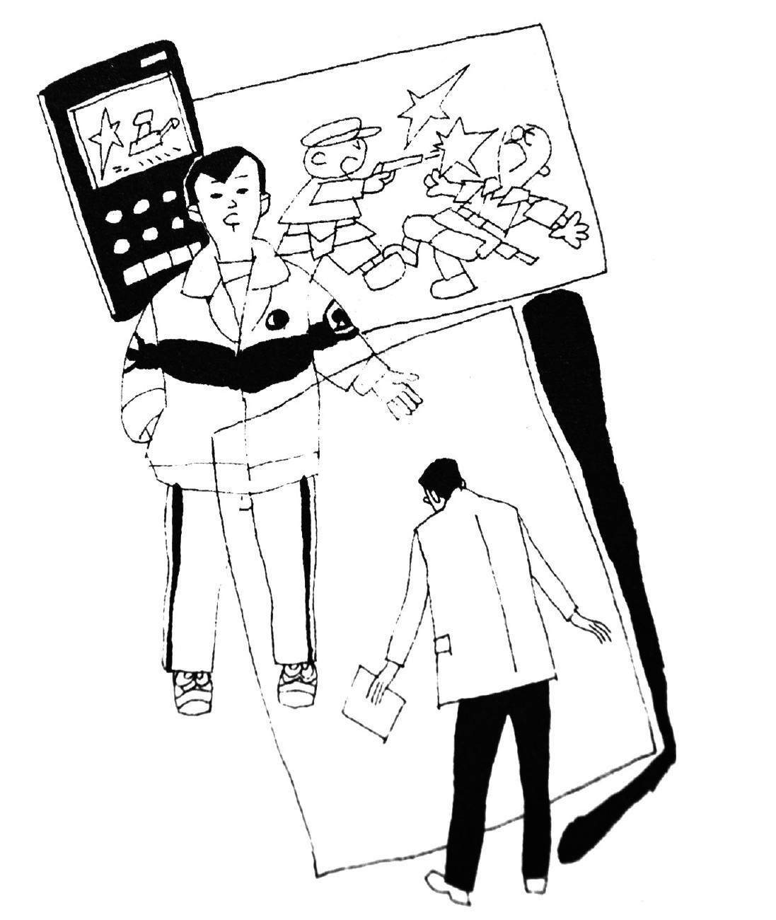 爸爸:等你回来,你就再也打不到我了。我现在身上装了“反弹器”,你打不到我,反而会打了自己。
