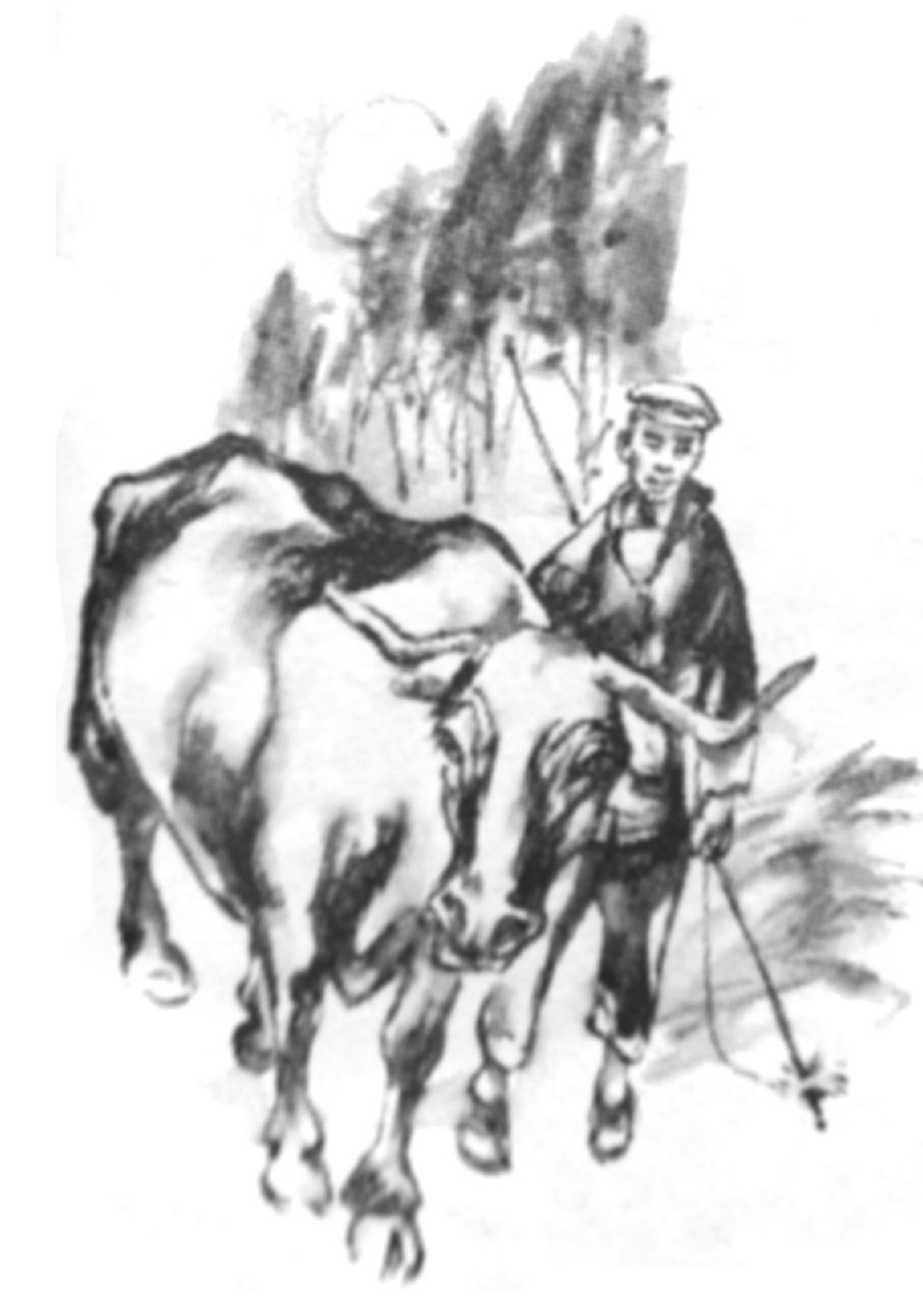 就从这天起,我家耕地、拉车、打场和碾米全由黑白花承担了。每天,父亲和牛早早下地,一前一后,那样的和谐自然。西岭的那45亩坡地,父亲和他的牛只用4天就耘完了头遍,牛从未偷口去啃泛绿的秧苗。那牛总是用头拱地姿势拉犁奔走,不偏不离,绳套在脖子上勒出深深的印痕也不吭一声,只是不时地喘着粗气。而父亲一直弯着腰扶犁,深一脚浅一步地朝前迈进,脸上的汗珠成串地滴落进泥土里。父亲和牛就是这般相似!每每到了地头,父亲就要割些嫩草喂牛,总怕饿着它。父亲拍着牛背说:“别急,歇一会儿,喘口气。”
