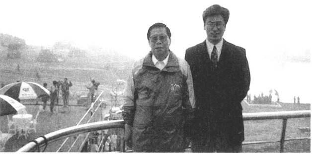 在露天演播室后面不到一百米,就是三峡大江截流的龙口处,直播中抽出时间,和我们的杨伟光台长照张相,平常见惯了杨台长穿西装,那天杨台长穿上工作服,在我眼中,更像是一位对后辈寄望很多的长者。