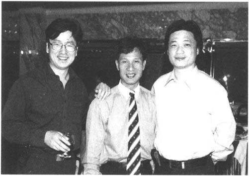 站在我和小崔中间的是古广明,光从这张照片上看,论身高论魁梧程度,我和小崔都显得更专业些,但一上球场,我们就业余起来,难怪东北有句老话:豆芽长房高——菜货。