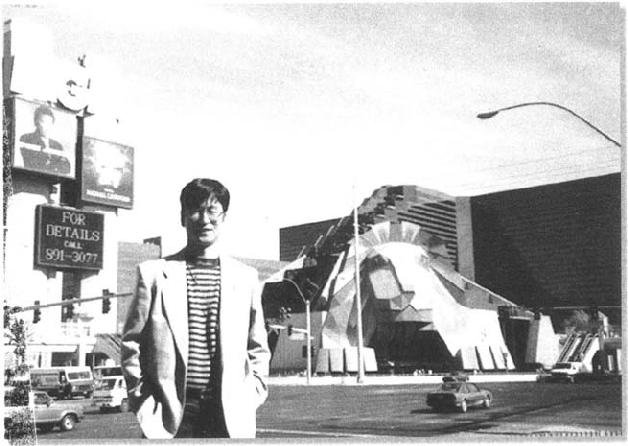 这张照片拍于美国的赌城——拉斯维加斯,后面狮子大张嘴的就是著名的美高梅饭店,其实人生有时也像一场赌局,你投入了岁月、努力和健康,但谁知道这一人生的大局,最后是输还是赢呢?
