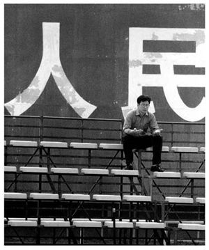 这是十年前在体育场留下的一张照片,“人民”二字看来意味深长,其实它是“增强人民体质”中的两个字。总听到有人说:做记者的,要替人民鼓与呼。我并不喜欢这句话。你凭什么“替”啊?大家都是“民”中的一个,“人”中的一员,说实话就好了。