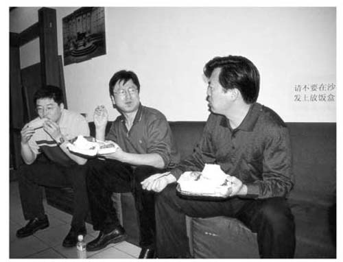 这是《三味聊斋》时的三味饭局,干电视的最讨厌盒饭,因为天天要与它打交道,可吃盒饭的时候又充满快乐。同时,接下来的节目话题,可能就是吃盒饭时定的。还有一点,黑白照片上看不出来,三个人做节目时穿得如此艳丽并不多见。