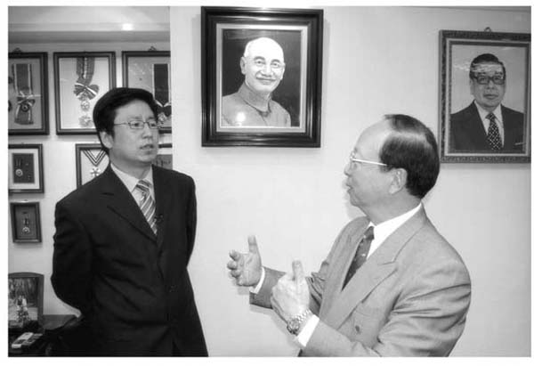 来到台湾,蒋介石与蒋经国是绕不过去的两个名字,但是蒋家第三代,却大多不幸有台湾风水师说:那是因为蒋介石与蒋经国都葬在临时墓地,未能入土为安所致。两蒋照片下,正接受采访的,是第三代中唯一的“蒋”门人——蒋孝严。不过,他也是刚从“章”姓改为“蒋”姓不久,是推动两岸直航的重要人物