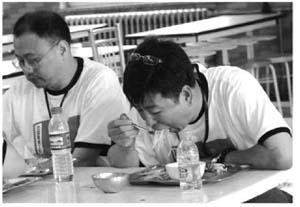 正长身体的我们,一顿饭也就是一份菜一份米饭或俩馒头,多了吃不起。因此,如何与大师傅斗智斗勇,争取让他给你装菜时多一点儿,就成了大学四年中一个重要的才能。由于大师傅往往是男的,女同学,尤其是漂亮的女同学,被我们怀疑在装菜时占了大便宜,不过也正常,在哪一个时代,美女都会占便宜。