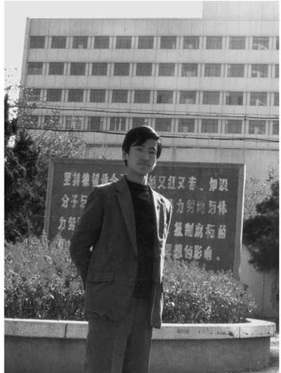 这张照片,也是大一时在校园主楼后面拍摄的。值得说一说的并不是装腔作势的我,而是我身后大牌子中的一些关键词:“又红又专”“抵制腐朽的没落……思想影响”,显然,那是一个乍暖还寒、还需要人们头脑中时常绷紧一根弦的时代,反资产阶级自由化及清除精神污染是那个时代时常要搞的运动。