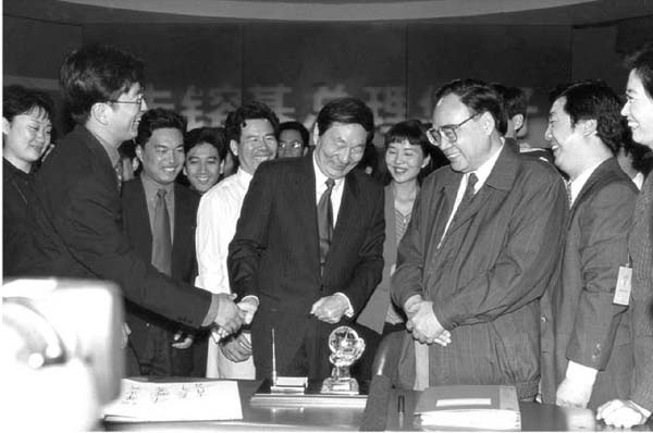 都说朱总理不爱笑,但这张照片上的他,却笑得像个孩子。其实不只他,所有的人都笑得很开心。不知为什么,今天看来,总觉得这一片笑容中,有一种干净与纯真。