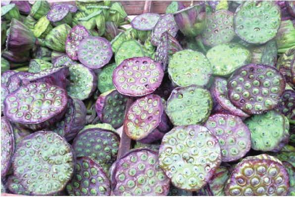 ◆ 集市上售卖的莲蓬。关于赶集,许多故事在记忆里变成了一种永恒。