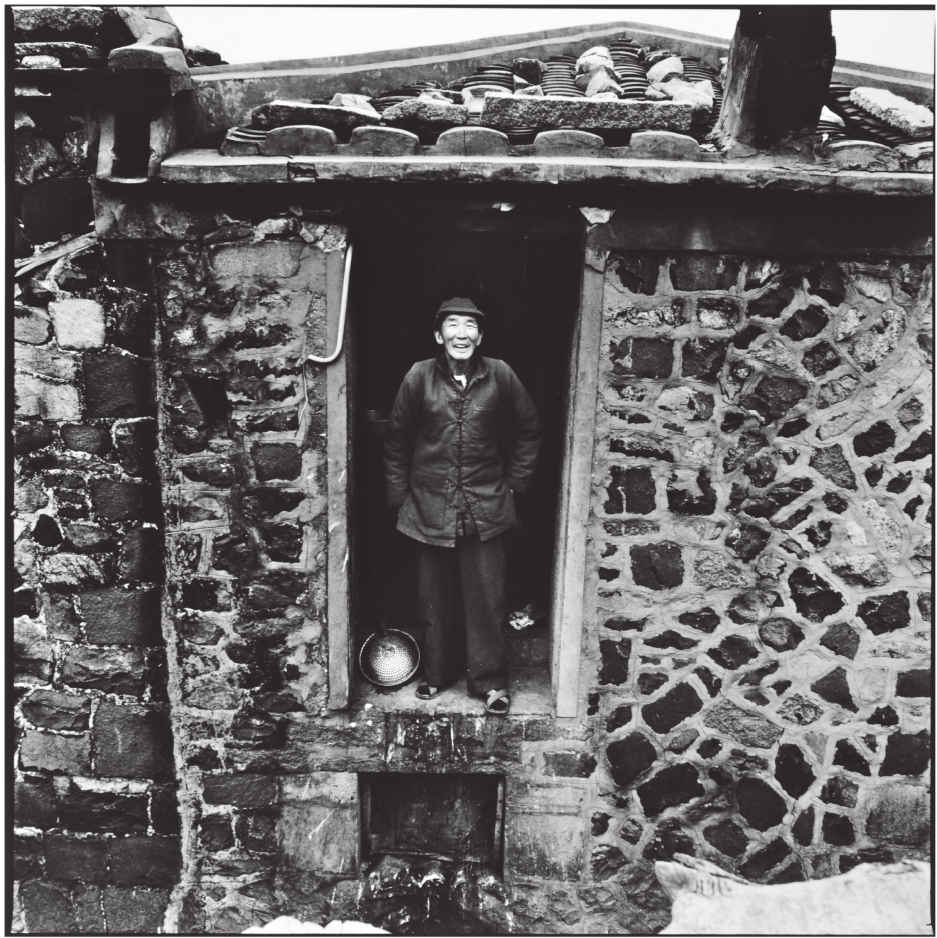 我沿着地势爬上爬下,碰见的最快乐的村民就是这位老人,应该也是浪里来去大半生,年纪大了无法出海,便做做家事、烧烧饭。这正是他家厨房门口。我本来在拍建筑,见他走出来朝我直笑,便也顺手按了快门。记得那天风大,冷得要命,我穿着军队发的羽绒长大衣还直打哆嗦,老人却是一件轻松的薄棉袄就打发了。