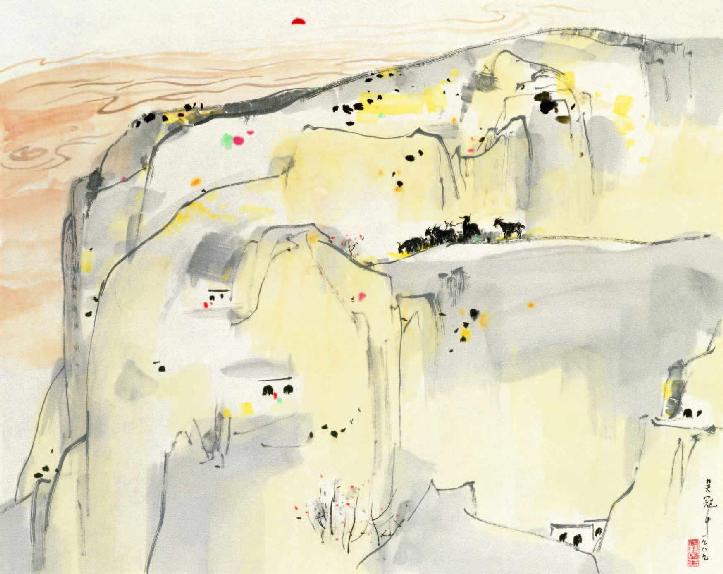 据说是风把黄土搬来,成了那一片纵横几千公里的高原,水又在漫长的年月里把它们切割得破碎。一九六九年初去的时候,浩浩荡荡几十辆卡车,扬起几里滚滚黄尘,“哼……哼……”地在高原上爬。人蜷在车棚里颠。不久看见了窑洞,一排排很革命的样子,大伙都慨叹。一会儿又见了羊群,拦羊老汉披着老羊皮袄,大家又都从心里崇敬,冲老汉招手,老汉却只顾了他的羊群。然后又看见了戴白羊肚手巾的人群拥在塬畔上,木然且疑惑地看我们的车队,我们又冲人家招手,人家仍旧木然且疑惑地站着。塬地平坦而开阔,就像平原,一望无际。忽然,汽车仿佛开到了大地的尽头,平平的塬地斧砍刀劈般塌下去一大片深谷,往下看头晕目眩。深谷中也有人间,炊烟袅袅,犬吠鸡鸣,牲灵和赶牲灵的人小得如蚂蚁在爬。越往北走这样的深谷越多,越大,渐渐不见了平地,全是起伏不断的山梁。然后到了延安。然后发现宝塔山并不“巍巍”,延河又因在冬天不能“滚滚流”。然后遇见有人朝我们伸来饭碗,被带队的县干部吼开。我心里的诗意遭了挫折。李卓在牙间“咝——”了一声,歪着脑袋想了半天。