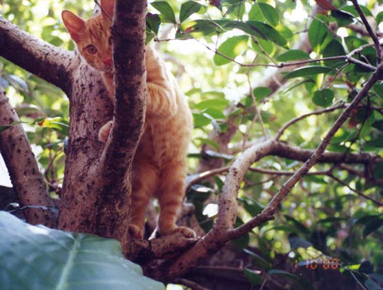还有麻瓜爱尾随我出门,行为不像猫而像狗一样的走在平地跟在脚边(通常再信任人的猫也只愿平行走墙头、车底或各种掩蔽物),麻瓜自不像狗族肯听我劝告垂尾扫兴返家,弄得我只好选它在大睡时出门。有几次早已经成功地离家好远,正庆幸,突然路边停车车顶洞声巨响,麻瓜自人家围墙墙头空降而下,得意地把尾巴竖直成小旗杆也似,企想跟我去我要去的地方,如同夜间我极想知道他的去处。谁教我不分季节晴雨不分场合就只穿那铁鞋一般的马汀大夫鞋,如何轻声蹑足都必发出踢踏舞或弗拉门戈的足声易于辨认追缉。