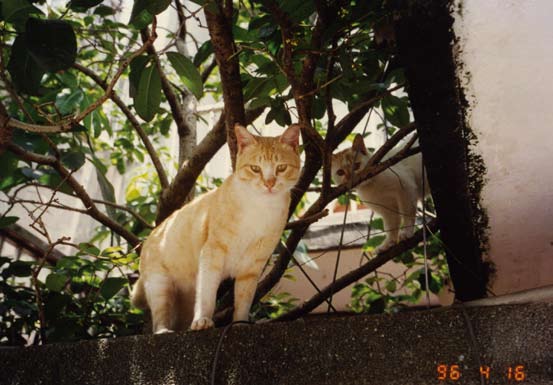 我们近期的猫史上就曾有那样一只大猫王,金针。金针与他的同胞兄弟木耳还没断奶就被邻居当垃圾一样丢给我们。针针黄背白颈腹,个头不大,身体自小毛病不断,主要是皮肤病,尤其他每一远游出巡回来,旧伤未愈又添新伤口,最难好的是脖子连肩胛一处,那伤疤跟了他一辈子,老是化脓发炎,我们不敢给他戴兽医一般处理这种状况时给戴的维多利亚女王项圈,怕他在外游荡时会行动不便造成危险,于是天文发明各种包扎法,历经无数次改良,终以一方白纱布,用一种童军绑法斜斜地穿过前脚腋下固定,怕他不耐扯去,每每敷药疗伤绑好后在场的人便齐声欢呼:“太帅了太帅了针塔塔。”