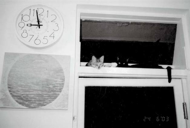 同样的还有英雄。英雄唯一张皇哭喊是他老妈把他丢弃在路口自助餐店前那晚上,我们把他带回家后他有吃有喝再不抱怨。英雄雄是标准的黑猫,黑猫的遗传基因简直不变异,我在哪个海角天涯见过的黑猫完全是那同一只黑猫。(多年前,曾在爱琴海的米克诺斯岛的港口与一只黑猫对视良久,以为是家中那朝夕相处的黑猫因思念我而穿越时空来会。)