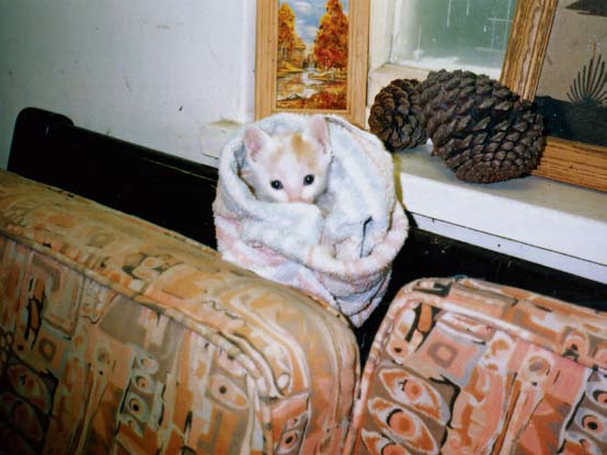 我眼睛能清楚视物、行动也渐可独立之前,我妈妈叼着我们辛苦地已搬了好几次家,一次是海棠台风来前,一次是有人远远跺脚拿伞赶她,一次、我觉得那次她是故意的,怕我们反对,搬家中,把我们当中最弱小的弟弟给偷偷丢掉了,我听到弟弟在福客多后面的水沟哭喊了整个黄昏,不知如今他下落如何了(作者注:被朱家收养了,是家中第十三只猫成员)。我妈妈是担心她ㄋㄟㄋㄟ快不够我们吃才这样做吗?我觉得她多虑了,因为我看过有好心和善的人族偷偷拿剩鱼剩饭给她吃,而且,就算有一天真的不够吃了,我们兄弟们发誓绝对不争不吵公平分享。