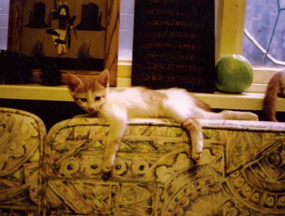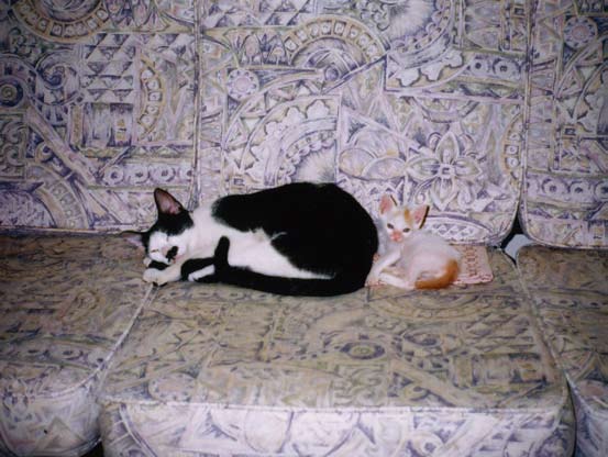 小三花不见后,我们决心在那农历年势必庙前鞭炮大作前把乳乳抓回家。乳乳很快长成骨架身量伟岸的美男子,他爱上人族谢海盟,天天尾随上三楼,三楼内已有神经质猫三只不能再增加,进不了屋的乳乳只得在阳台短墙上叫唤,他是超赞的男低音,又唇上一撇黑胡髭,我们总笑盟盟:“你的拉丁情人又唱情歌啦。”