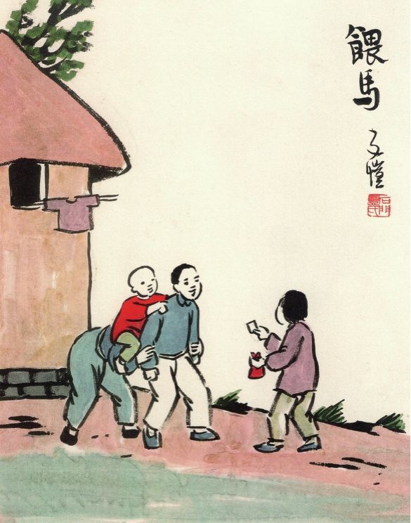 这是“逃难”。这是多么惊慌、紧张而忧患的一种经历!然而人物一无损丧,只是一次虚惊。过后回想,这回好似家的人突发地出门游览两天。我想假如我是预言者,晓得这是虚惊,我在逃难的时候将何等有趣!素来难得全家出游的机会,素来少有坐汽车、游览、参观的机会。那一天不论时,不论钱,浪漫地、豪爽地、痛快地举行这游历,实在是人生难得的快事!只有小孩子真果感得这快!他们逃难回来以后,常常拿香烟簏子来叠作栏杆、小桥、汽车、轮船、帆船;常常问我关于轮船、帆船的事;墙壁上及门上又常常有有色粉笔画的轮船、帆船、亭子、石桥的壁画出现。可见这逃难在他们腑中有难忘的欢乐的印象。所以今晚我无端地问华瞻最喜欢什么事,他立刻选定这“逃难”。原来他所见的,是“逃难”的这一面。