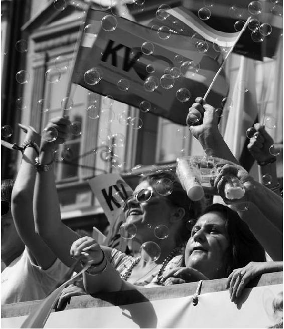 北欧街头的同性游行,门口悬挂着的彩虹旗是这类酒吧的标志