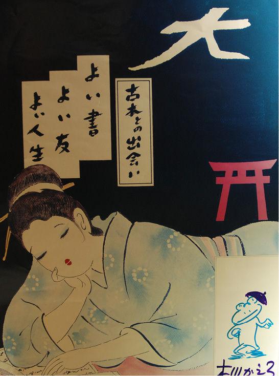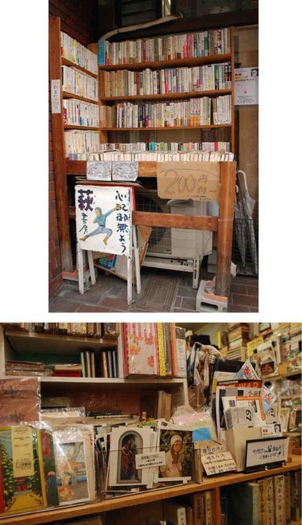 “咱们这个店,跟传统旧书店比起来,其实真不是一回事呢。虽然——看看咱们柜台后头,也摆满了古典文学大系、大和汉辞典什么的,怎么样?很有旧书店的感觉吧!但是我们都没有在传统店里做过学徒,也没有去神田神保町修行过!我们就这么凭着感觉开店啦。就算自成一格好了!萩书房流吧。”贤次讲起这些,都很兴奋,“一般旧书店老是一副板着脸的感觉,我才不要这样呢,所以才在门口放那幅画儿。我希望萩书房是那种很容易进来的店,不给客人任何压力。谁都可以进来坐一坐,转一转,听听音乐。”