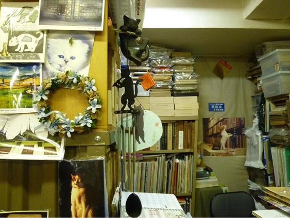 主人藏身书堆,印象中认为他不大好打交道,总是一个人埋头看书理书,对生意也很不上心,连一般的寒暄都很少。逡巡一番,发现柜台、立柱上贴了好些猫的照片、明信片,书堆角落摆着姿态各异的小瓷猫,非常可爱,便鼓起勇气同主人搭讪:“您也喜欢猫么?”不料一向倨傲冷淡的主人突然很开心地说:“是啊!我喜欢猫。家里有两只!年纪都不小了,一位叫花子,一位叫小黑。”真是意外的切入口。那天下午我们谈了很久,都是说猫,像是讲自家孩子,怎么都说不完。有顾客光临,主人无暇招呼,说今天营业到此结束。招牌上写着营业时间到7点。那年轻的男学生问:为什么这么早关门?主人又恢复了平素的冷淡:今儿下雨!