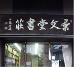 2014年1月4日再访留影。近年汇文堂书店因四代主人大岛夫人健康状况欠佳,时常闭门休业,而由内藤湖南所书、见证汇文堂百年光阴的匾额仍默默守护在此