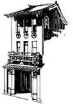 其中堂之名出自《老子》:“惚兮恍兮,其中有象;恍兮惚兮,其中有物。窈兮冥兮,其中有精;其精甚真,其中有信。”原是名古屋一家佛书老店,明治三十八年(1905)在京都开设分店。反町茂雄在《古书肆回想》中写过:“名古屋的其中堂是专售佛书的古书肆。每年正月出版的销售目录内容丰富,非常厚。中有日本寺院、僧侣及佛教专业诸大学所需要的大部分书籍,雄踞日本中部地区古书业界。”昭和五年(1930)九月迁址到现在的地方,新居由当时京都大学建筑系年轻的学生八木清之助设计。八木过世得很早,其中堂是他在世间唯一的作品。落地窗内一排吊灯,墙根雕刻有佛经故事的木制栏杆,很长的楼梯,柜台一侧通往花园的小门。今天看来可谓古朴幽深,在当时却是很新潮的设计。