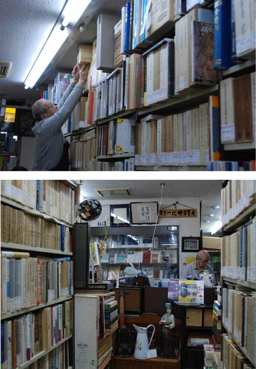 店内也是狭长纵深的布局,靠墙两面书架,中间一排。分类大略是历史、民俗、地理、文学、社会、自然科学、美术工艺、古籍。店内登记的书目约有万余册,质量均可观。历史类书籍最多,考古学、地方志、东洋史一类占了整面书墙,因此文学部的师生常光顾此地。问店主是不是自己也对此感兴趣,他连连摇头:“我只是做生意。学生最想要什么书,我就尽力去找什么。我自己倒没有什么特别的喜好。”