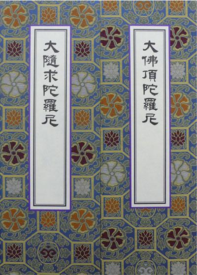 藤井文政堂新出版的《大佛顶陀罗尼》,锦面为藤井先生的女儿亲自挑选。藤井先生说:“京都染织业发达,有许多漂亮的锦缎,适宜装帧佛经。女儿想把书做得好看些,挑来挑去指定了这一种。”