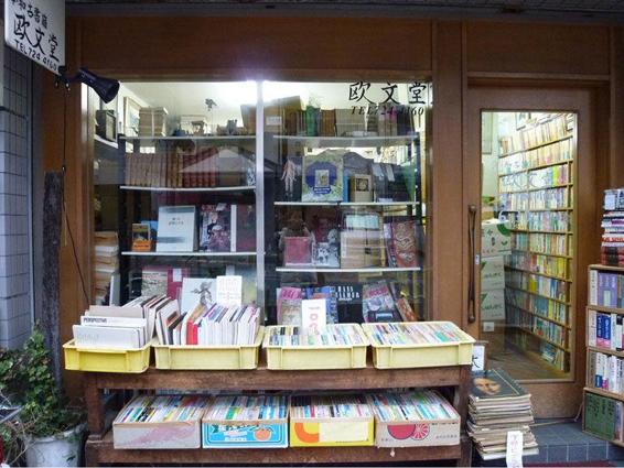 屋子中间有两排接着天花板的书架,多为地方史、日本史、美术史、小说类书籍,翻价格,一律都不低。某日看到一本吉卜力(日本著名动画工作室)的《借东西的小人》,一百日元,随手拿下。店内空间狭窄,堆了许多纸箱子,里头都是未及整理的旧书。店主坐在一大堆山积一般的书纸里,正在整理书目和价格。