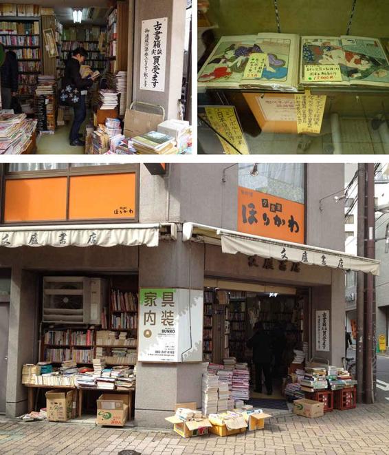 老板娘正奋力整理一堆漫画。挑了本文库本与她搭讪,说看贵店的店号,以为是专售文史旧籍,不想有这么多漫画。她一愣,继而笑道,其实本来是卖那些书的呢,可是——生意不好做,就只能靠这些来维持经营。她说自家的店已经开了五十多年,从丈夫爷爷那辈开始。和很多旧书店老板一样,她感慨周边旧书店的萎缩、生意的艰难,叹息爱读书的年轻人不如从前多,或曰尘灰扑扑的旧书纸对年轻人而言已无多魅力。问她要了名片,又要离开。我说,这是第一次来广岛,太匆忙,未及仔细看书,所以很抱歉。她道,下次——下次可以再来,在这里等你。