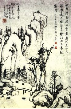 也许中国画里的诗意较多一点。画山水不是“春山烟雨”,就是“江皋烟树”,不是“云林行旅”,就是“春浦帆归”,只看画题,就会觉得诗意盎然。尤其是文人画家,一肚皮不合时宜,在山水画中寄托了隐逸超俗的思想,所以山水画的境界成了中国画家人格之最完美的反映。即使是小幅的花卉,像李复堂、徐青藤的作品,也有一股豪迈潇洒之气跃然纸上。