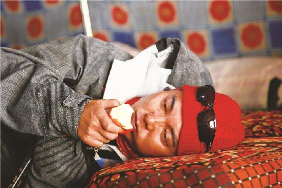 转山是个体力活,为了行走,其他的力气能省则省。转山途中在休息站休息时,我已疲惫不堪,为了节省体力,我趟下啃一个苹果。