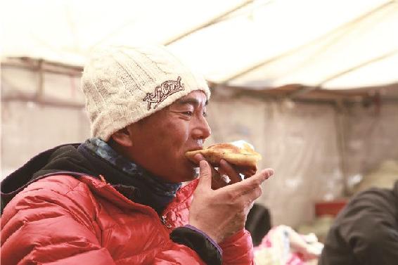 实际上,第三圈是个转折点。第四圈、第五圈、第六圈,高反症状虽然减轻,可体力一圈不如一圈。转完第七圈后,疲惫、若隐若现的高反和紫外线,把我“塑造”得人不像人鬼不像鬼,原本白皙的皮肤变得黑如炭。更要命的是,我们已吃不下东西,也就是说,我们补充体能的来源减少了。食物是体能的根本来源,进食很少,你的体能注定下降,体能下降,免疫力顺理成章地降低,感冒、咳嗽、胃疼,身体免疫力降低带来的并发症如排山倒海而来。我只能依靠大量的感冒冲剂和其他药物来维持残弱不堪的躯体。