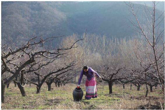 因为房舍长期失修,睡在炕上,房顶上的小土块儿直往人脸上落。偶尔还有轻微的风从细小的墙缝里吹进来。三月的终南山还是有些微凉,我又把衣服搭在被子上。一天的劳动让我有些困倦,我闻着屋里盈余的艾草的余香,听着外面的水声,不知何时睡着了。