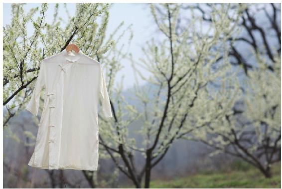 山居后,随着性格愈加平和,我已不再穿那些热烈、张扬的大摆花裙了。在棉麻底料的基础上,我开始愈加喜爱纯色素净的复古风:盘口斜襟装,左右交领式汉服,是我最常穿的衣服,既贴合心意又行动方便。而这时,随着自我人格的稳定成熟,我愈加坚定地知道自己的内心,已不会再为别人怪异的目光所困扰,也不需要从别人的赞美里积累自信,只穿自己真正爱穿真正想穿的衣服,这已成为一种自然的存在状态。很多同住在山里的人大都也是棉麻布衣的爱好者。那些住在山里的人我是一眼就能辨别出来的,因为他们的身上总带着一股与众不同的、清风般的气韵。
