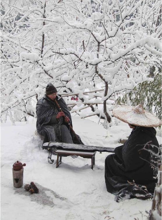2013年的冬季,终南山里的第一场大雪。有人在雪地里吹箫弹琴。