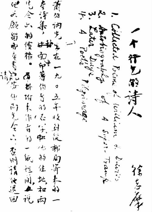 萧伯纳先生在一九○五年收到从邮局寄来的一本诗集,封面上印著作者的名字,他的住址,和两先令六的价格。附来作者的一纸短简,说他如愿留那本书,请寄他两先令六,否则请他退回……