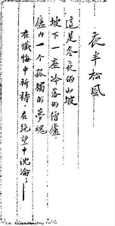 坡下一座冷落的僧庐,