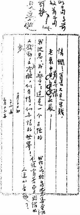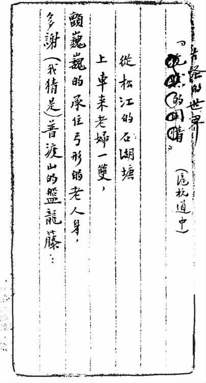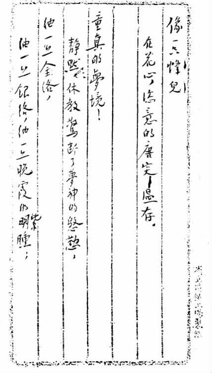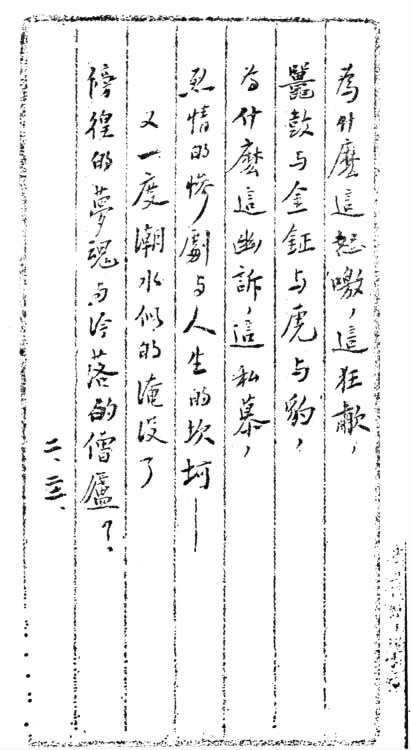 编者按:该诗已收入《志摩的诗》(【全二】八一)。末两行于发表时已有改动,但手稿并未涂去。